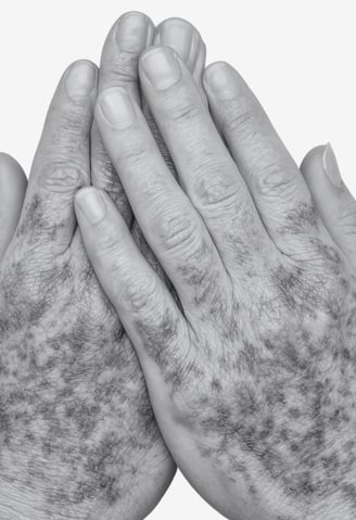 As manchas senis, também chamadas de lentigos senis ou manchas de idade, são alterações na pigmentação da pele que surgem com o envelhecimento. Elas são causadas principalmente pela exposição acumulada ao sol ao longo dos anos, levando ao excesso de produção de melanina em determinadas áreas. Essas manchas costumam ser planas, de tonalidade marrom, e aparecem em regiões mais expostas, como rosto, mãos e braços.